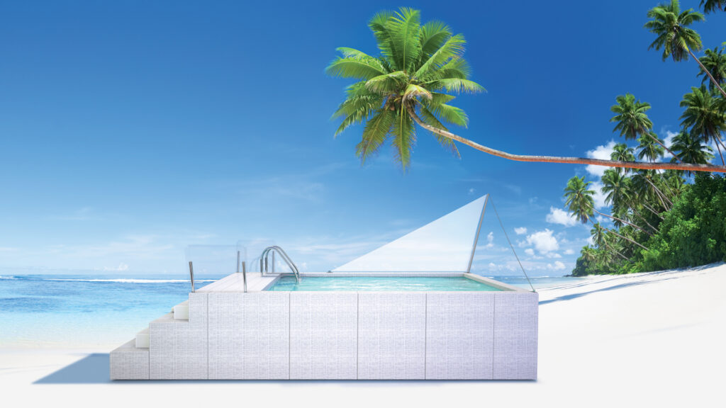 Interno: Rivestimento vasca in fibre poliesteri e polimeri ad alta resistenza e durata. Questo resistentissimo materiale viene successivamente trattato anti-UV, grazie all’utilizzo di additivi speciali che limitano al massimo l’invecchiamento del materiale. Il telo Dolcevita è resistente alla trazione di 430 Kg/5 cm. Secondo le norme DIN 53354.